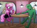 Faint buzzing could be heard throughout the hive by listening carefully enough, but it was most often ignored. Queen Chrysalis heard a particular set of wings, still far away down one of the many tunnels, which seemed to be drawing closer. Her ears twisted themselves to face the noise coming from behind; as it drew closer, she felt slightly more movement from the foals underneath her rear and hindlegs, and she figured they’d seen something she hadn’t yet; the queen slowly began to smile without realizing it, drool making its way between her fangs to splatter on her slick membrane; her smile was killed intentionally before she rotated her head to look directly behind herself. Her born child finally brought to her a golden chalice filled with liquid love, which she took in her magic and brought to rest at her nose. She inhaled deeply. It was strong love, pony love, the kind of deep love that drives ponies to have their own foals. Now it was nothing more than food for her to make her foals. She kept that thought in mind as she tilted her head back and drank all of it in one gulp. She exhaled loudly, resisted a burp, and closed her eyes. The love made her head warm and fuzzy, causing her to forget the world around her and even her body struggling underneath her. She felt so satisfied. It never lasted. Her frown returned as she felt her stomach quickly process that love and diffuse it into the amniotic fluid sustaining her foals. It was almost painful for her to feel the precious love draining from her body into their bodies within hers, where she couldn’t enjoy it. Her magical grip flickered, dropping the chalice onto her swollen middle; she watched it bounce several times as her born child tried to catch it in his hooves, while her unborn children merely flinched at it, and he dove in front of her but out of her view as it fell further. He wordlessly flew away to collect more, hiding the chalice that was likely even more dented than beforehoof, and then she was alone again, as much as she had been previously.