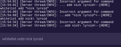 oh wait i think usernames dont have spaces but display names do... i think i should disable the whitelist.....