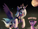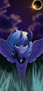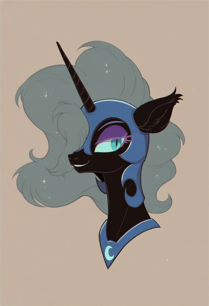 >Princess Luna is at your side, her withers warm beneath your touch and coat soft against your hand.