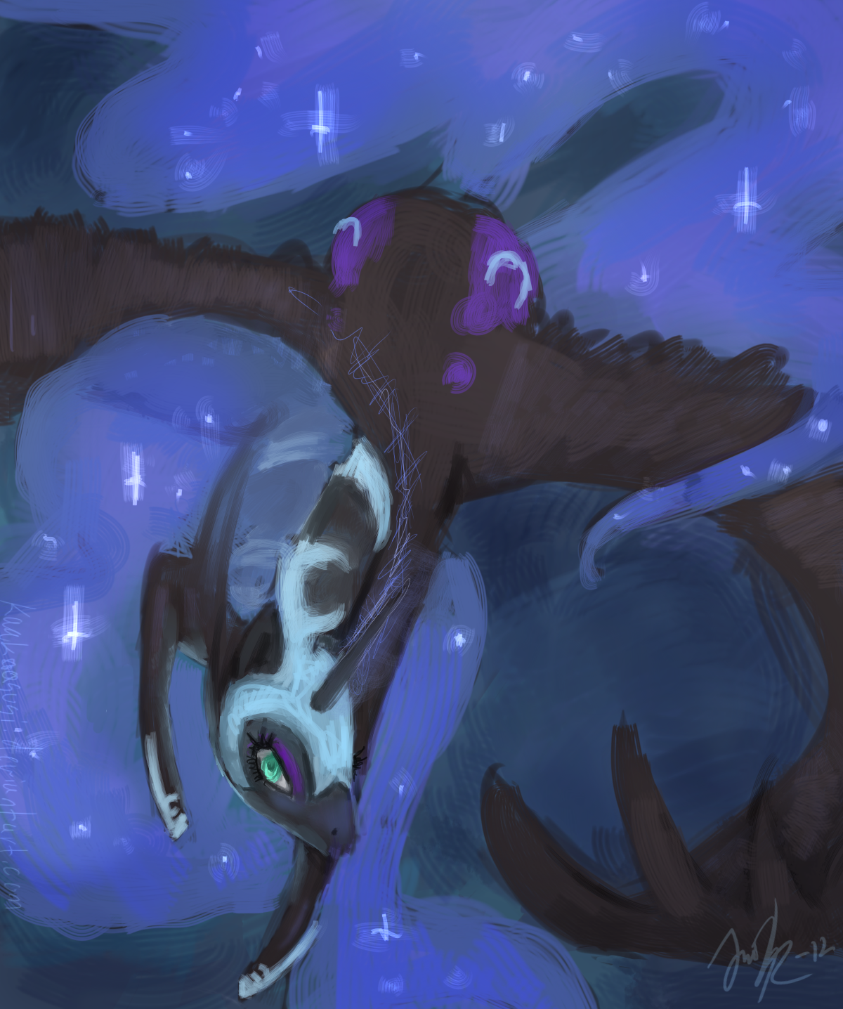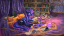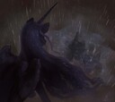 >Princess Luna is at your side, her withers warm beneath your touch and coat soft against your hand.