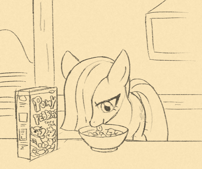 Faint buzzing could be heard throughout the hive by listening carefully enough, but it was most often ignored. Queen Chrysalis heard a particular set of wings, still far away down one of the many tunnels, which seemed to be drawing closer. Her ears twisted themselves to face the noise coming from behind; as it drew closer, she felt slightly more movement from the foals underneath her rear and hindlegs, and she figured they’d seen something she hadn’t yet; the queen slowly began to smile without realizing it, drool making its way between her fangs to splatter on her slick membrane; her smile was killed intentionally before she rotated her head to look directly behind herself. Her born child finally brought to her a golden chalice filled with liquid love, which she took in her magic and brought to rest at her nose. She inhaled deeply. It was strong love, pony love, the kind of deep love that drives ponies to have their own foals. Now it was nothing more than food for her to make her foals. She kept that thought in mind as she tilted her head back and drank all of it in one gulp. She exhaled loudly, resisted a burp, and closed her eyes. The love made her head warm and fuzzy, causing her to forget the world around her and even her body struggling underneath her. She felt so satisfied. It never lasted. Her frown returned as she felt her stomach quickly process that love and diffuse it into the amniotic fluid sustaining her foals. It was almost painful for her to feel the precious love draining from her body into their bodies within hers, where she couldn’t enjoy it. Her magical grip flickered, dropping the chalice onto her swollen middle; she watched it bounce several times as her born child tried to catch it in his hooves, while her unborn children merely flinched at it, and he dove in front of her but out of her view as it fell further. He wordlessly flew away to collect more, hiding the chalice that was likely even more dented than beforehoof, and then she was alone again, as much as she had been previously.